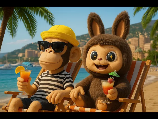 A playful AI video featuring Labubu and a Bored Ape enjoying their day in Monaco.